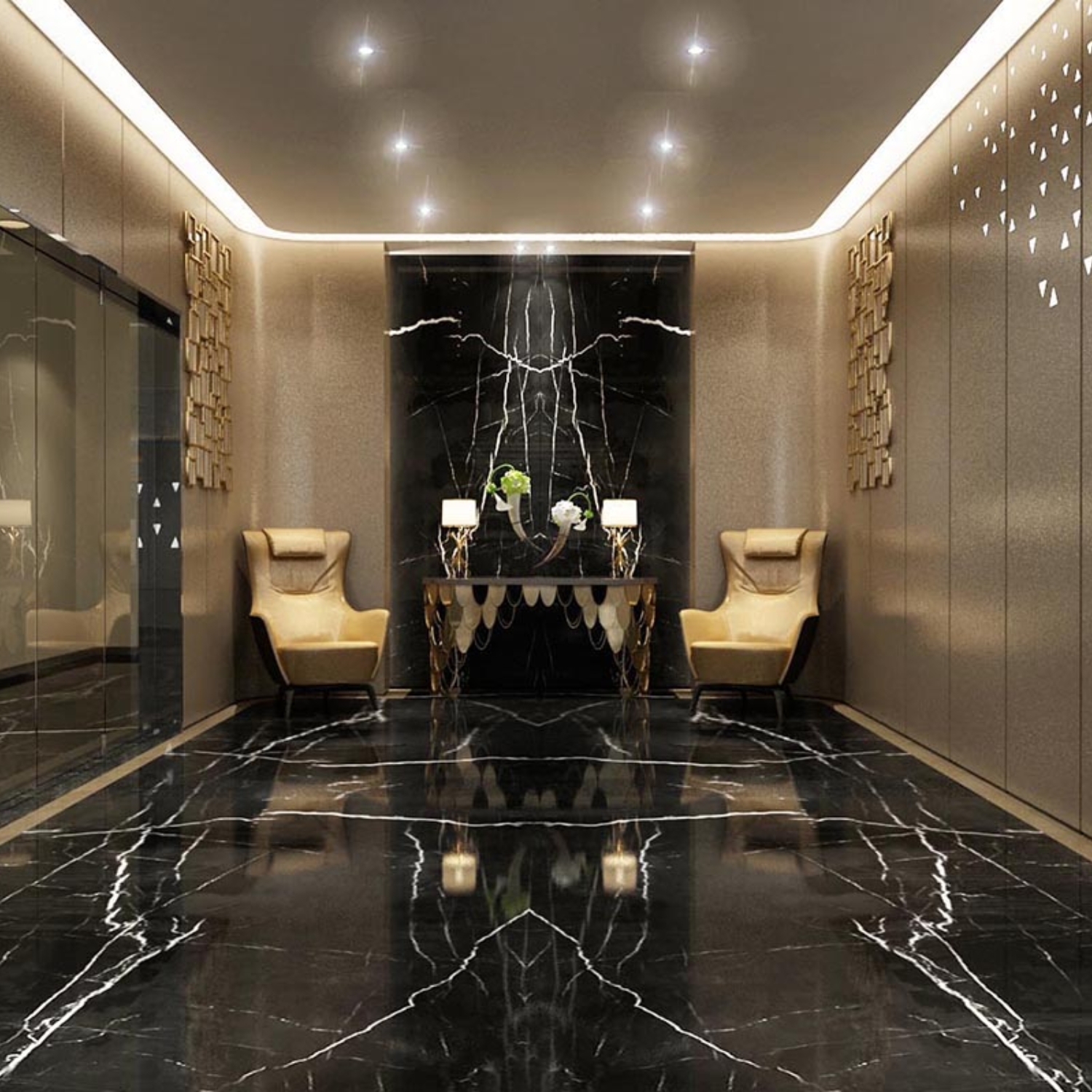 Alexander Black is a cool breeze from Turkiye, sourced from the Amanos region in the Mediterranean. It is one of the most sought-after black marbles worldwide. The dominant black colour symbolises night, magic, and mystery — qualities that have been favoured by businesspeople, lawyers, and judges for millennia. Black represents honesty and justice, offering a sense of strength and integrity.