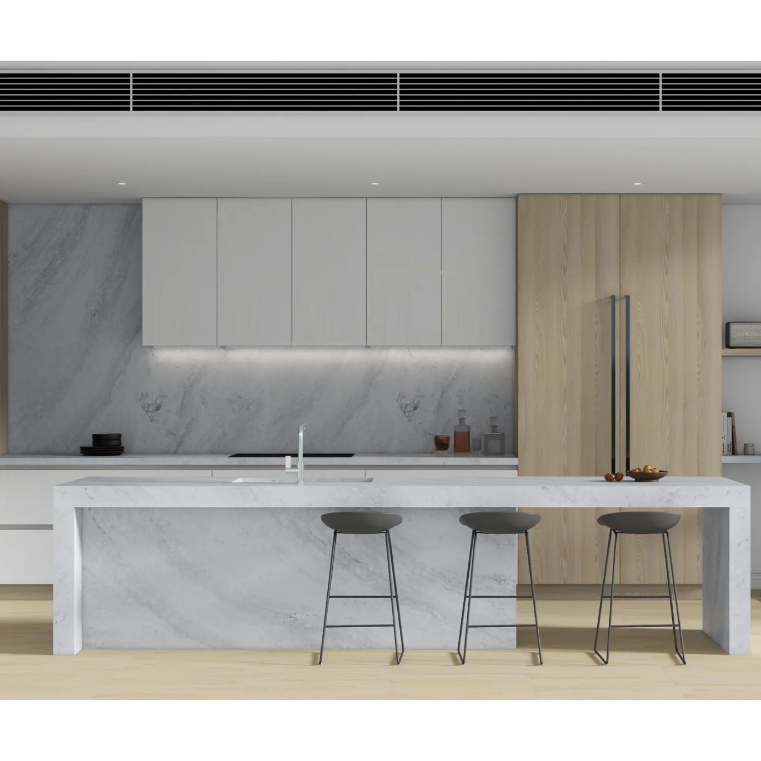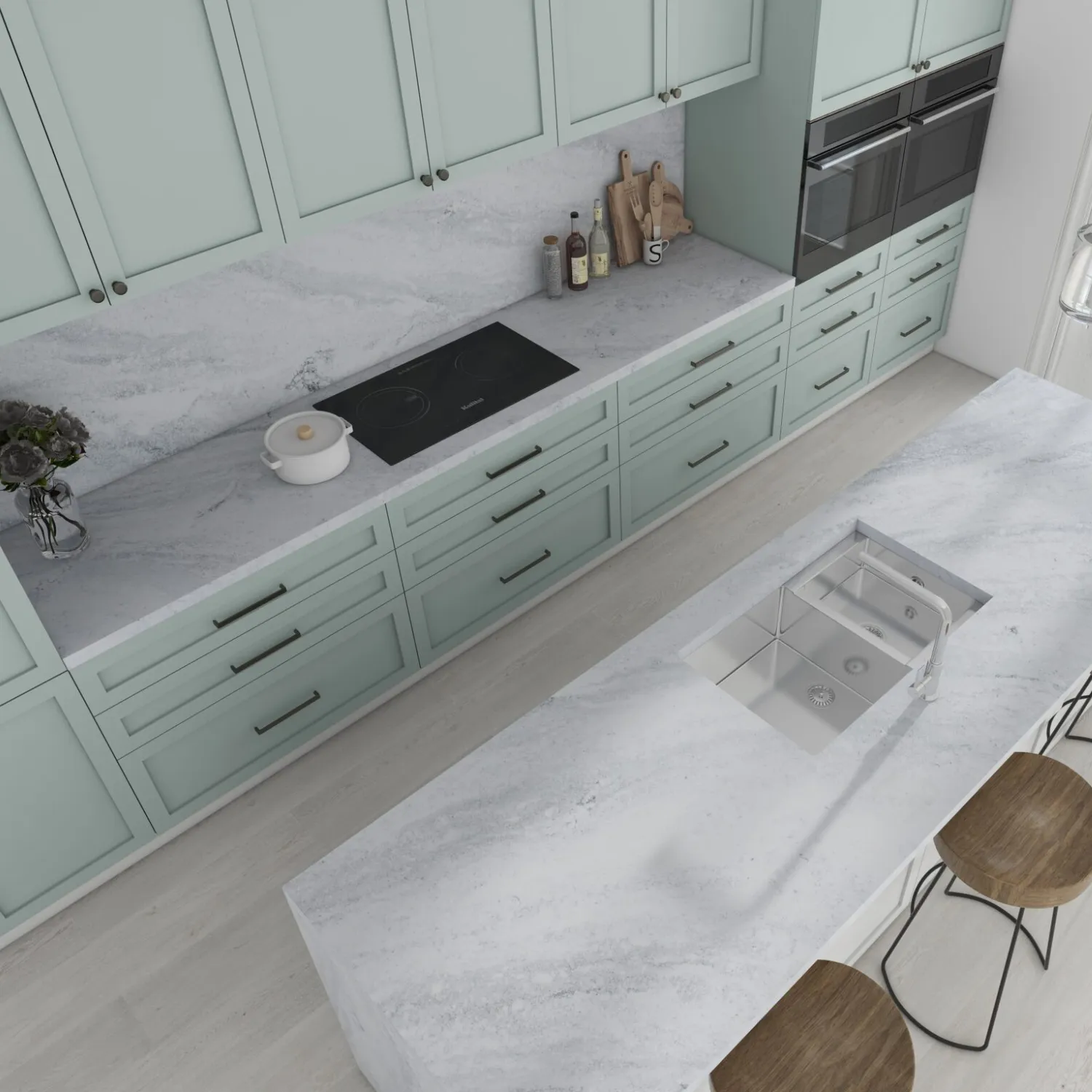 Manufactured using a sustainable blend of natural minerals and recycled materials, Alpana Ash is completely free from crystalline silica, supporting safer choices in construction and design. The polished finish enhances the visual depth of its gentle swirls, reflecting ambient light to brighten up any space. Perfect for kitchen benchtops, bathroom vanities, and feature walls, this slab blends style, safety, and resilience in one elegant solution. Its non-porous nature makes it resistant to everyday stains, scratches, and heat—ensuring easy care and long-lasting durability.