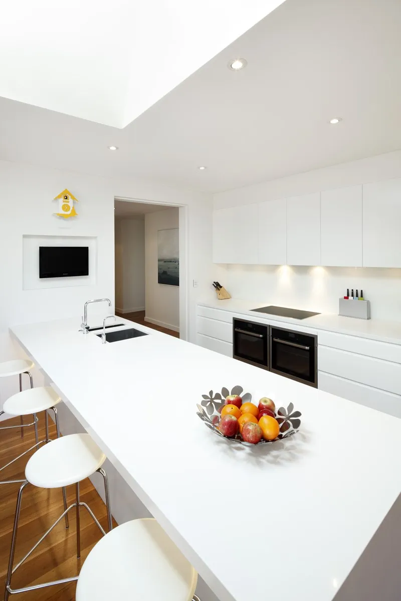 Silica-free bright white surface offering clean design and versatile elegance for interior spaces.