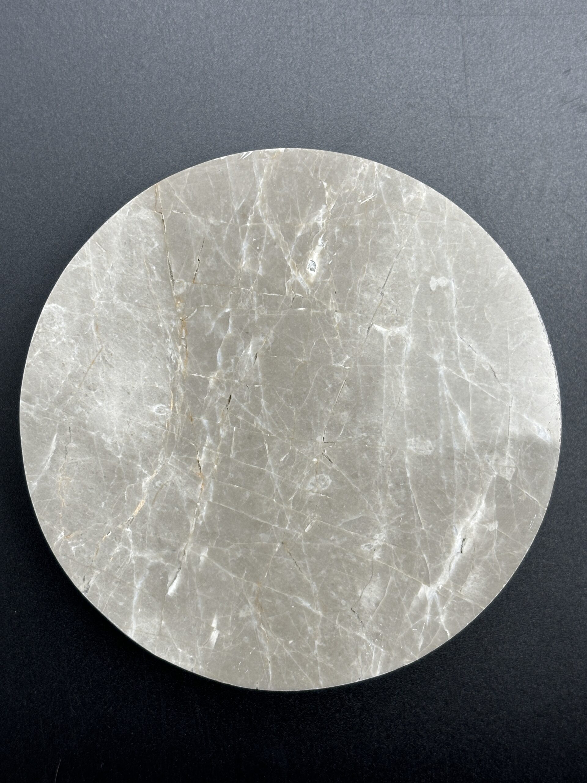 Experience the subtle luxury of the Arya Grey Marble Coaster, crafted with precision and sophistication. This elegant coaster boasts intricate veining that dances across its cool grey surface, creating an exquisite pattern that complements any interior decor. The natural hues, a mix of silvery greys and fine white striations, showcase the stone's innate beauty and timeless appeal. Perfect for protecting surfaces with a touch of class, this coaster not only serves as a functional accessory but also as a statement of refined taste. Each piece is uniquely marked by the natural characteristics of the stone, making your space truly one-of-a-kind. Ideal for both formal and casual settings, the Arya Grey Marble Coaster embodies a seamless blend of durability and elegance.