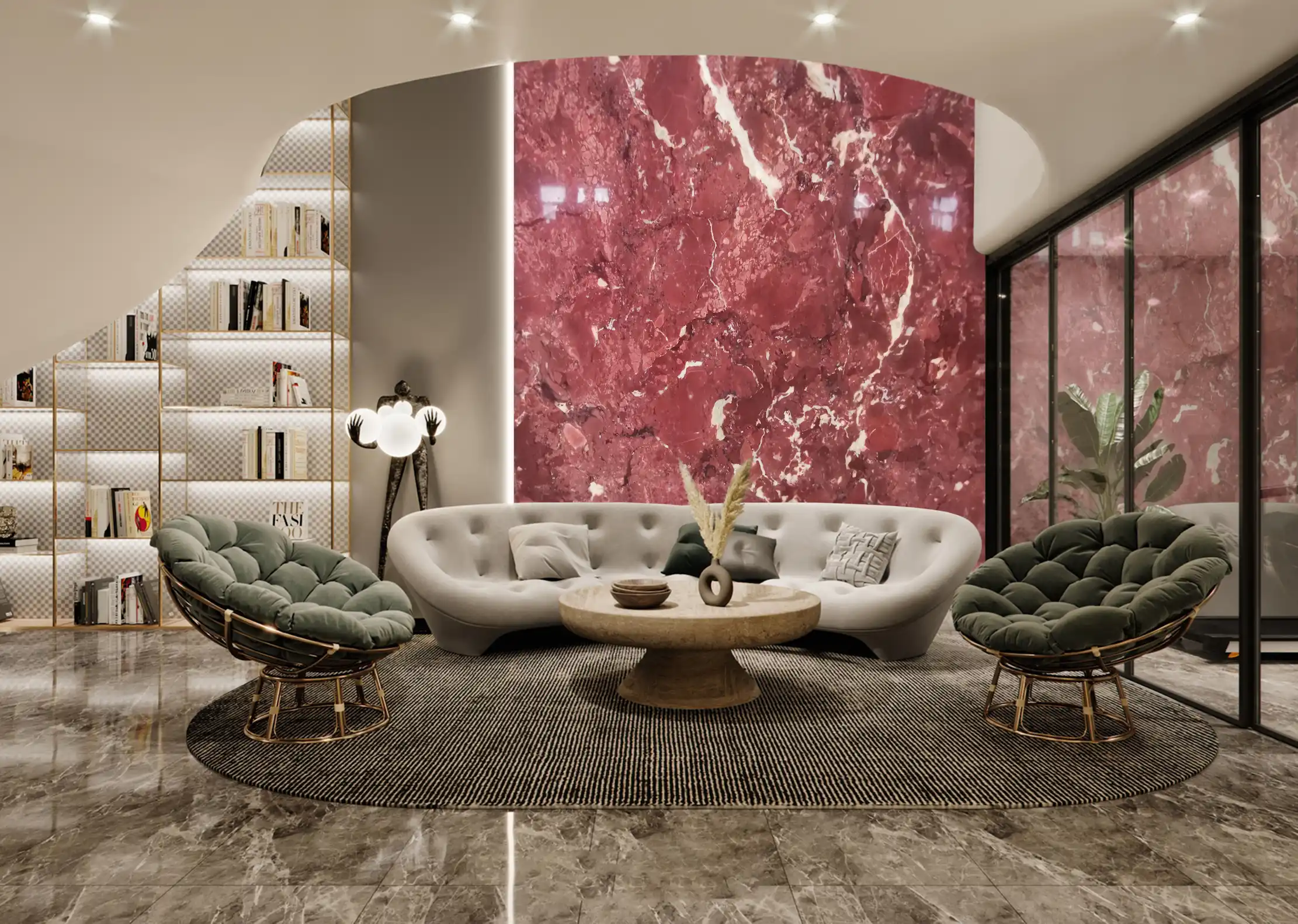 Australian marble with bold red tones and natural veining—perfect for feature walls, benchtops, and outdoor elegance.