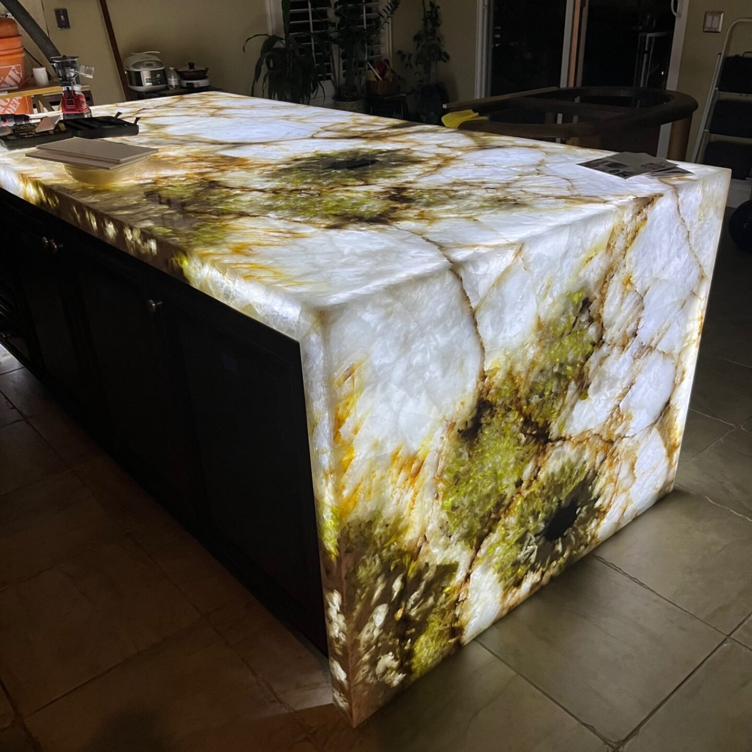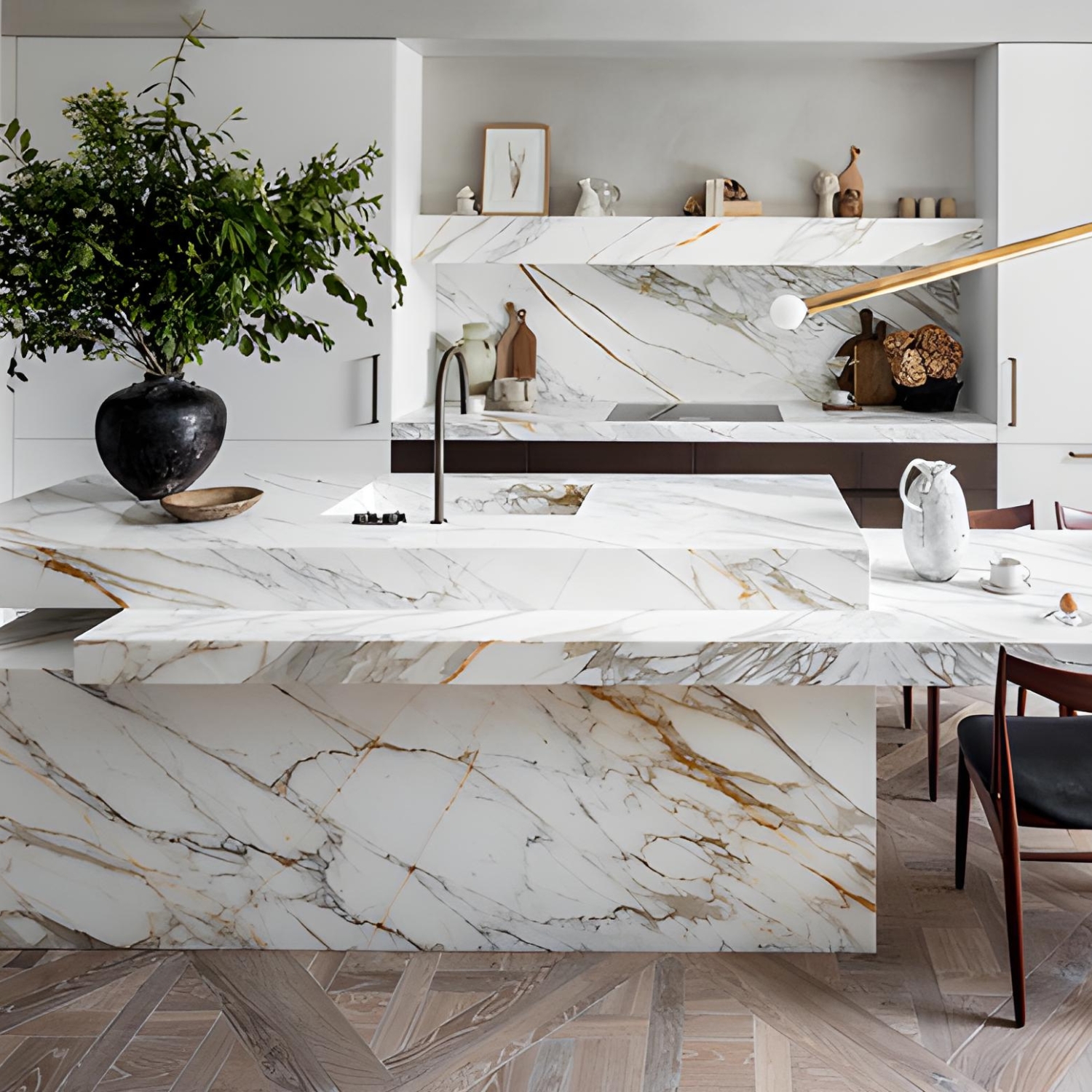 The sensational style and texture of Bianco Albiro (Candle Quartz) make it a versatile choice for nearly any interior. Whether applied as marble flooring, wall cladding, or feature walls, it inspires a sense of exquisite elegance. Glamorous and timeless, it is also perfect for kitchen benchtops, bathroom vanities, and other sophisticated applications, bringing a breeze of refinement to any space.