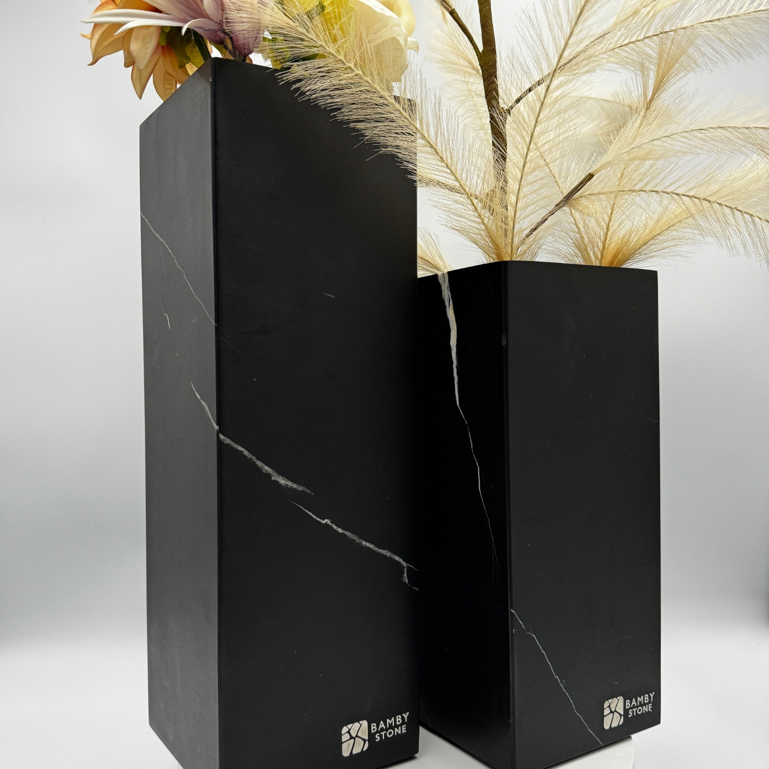 Black Marble Vase Set Elegance in Duality