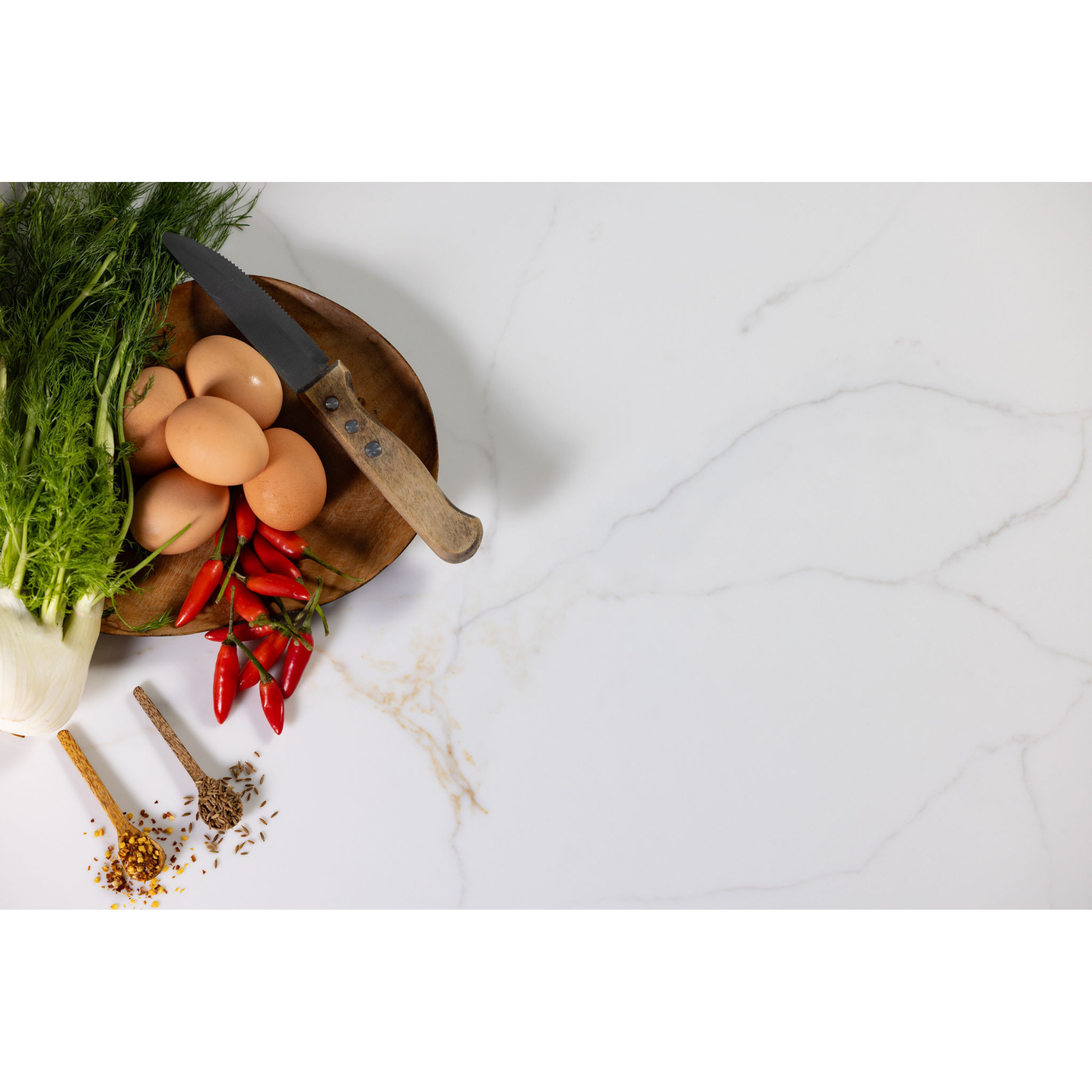 ❌ “outdoor use” — Engineered stones suit indoor use only; heat, sun, and outdoor conditions can affect colour and performance.