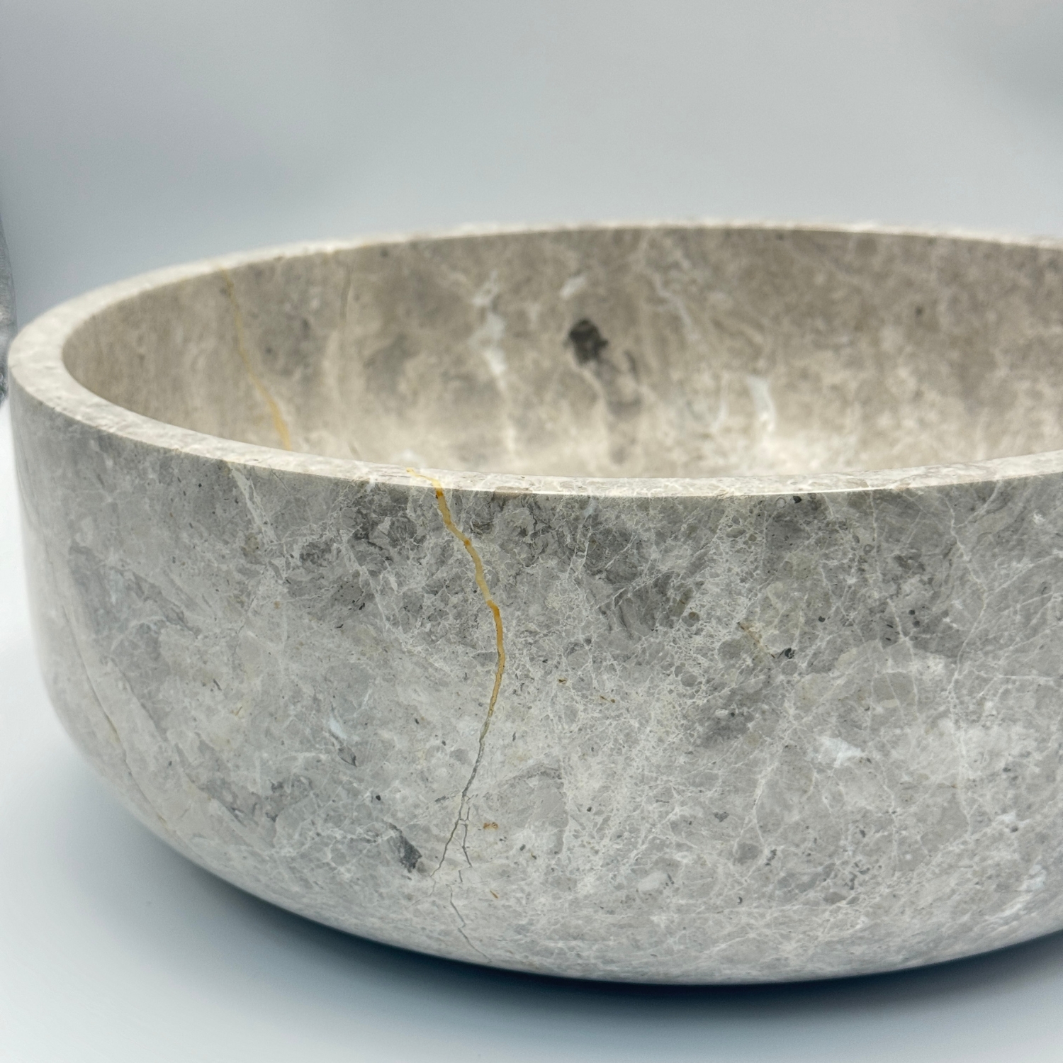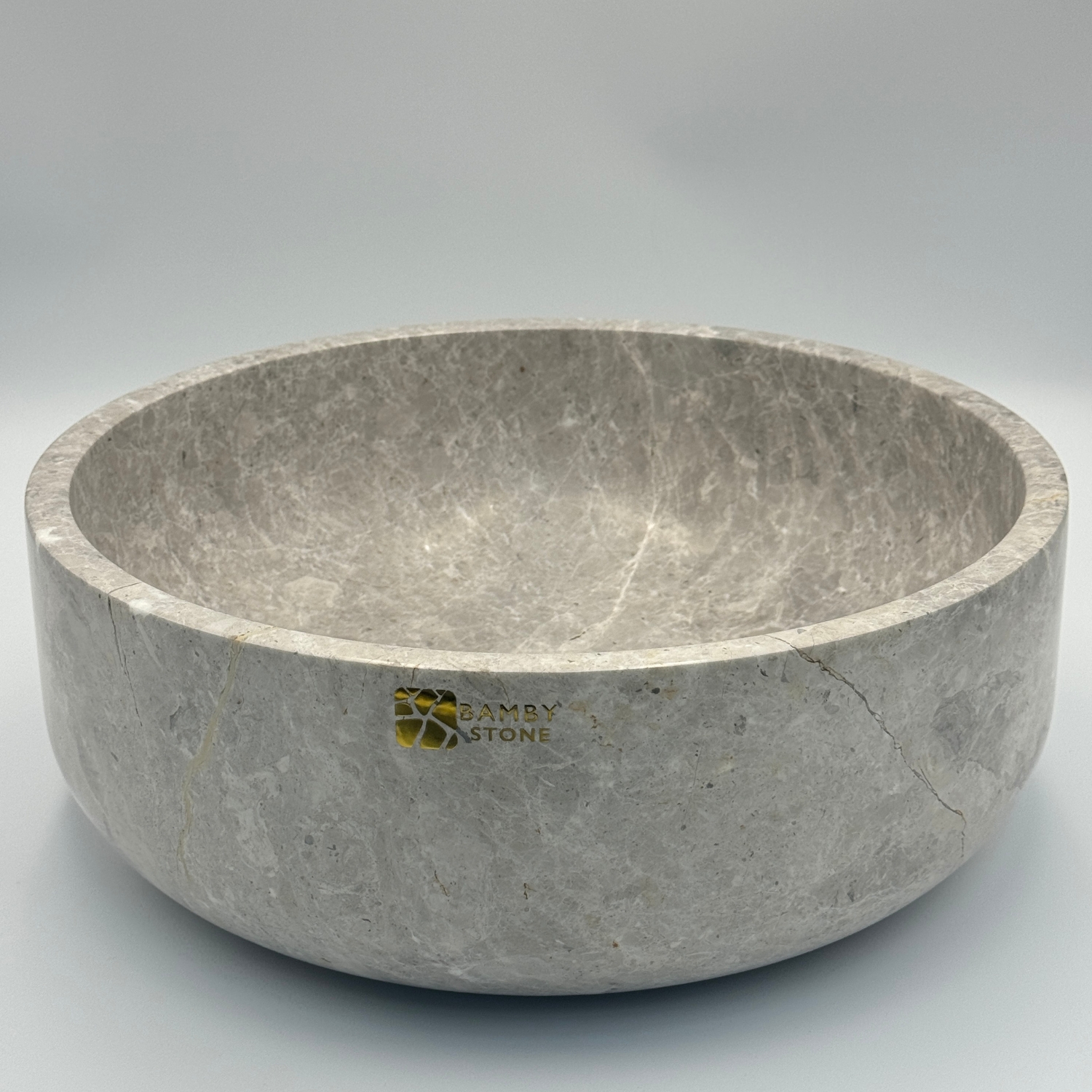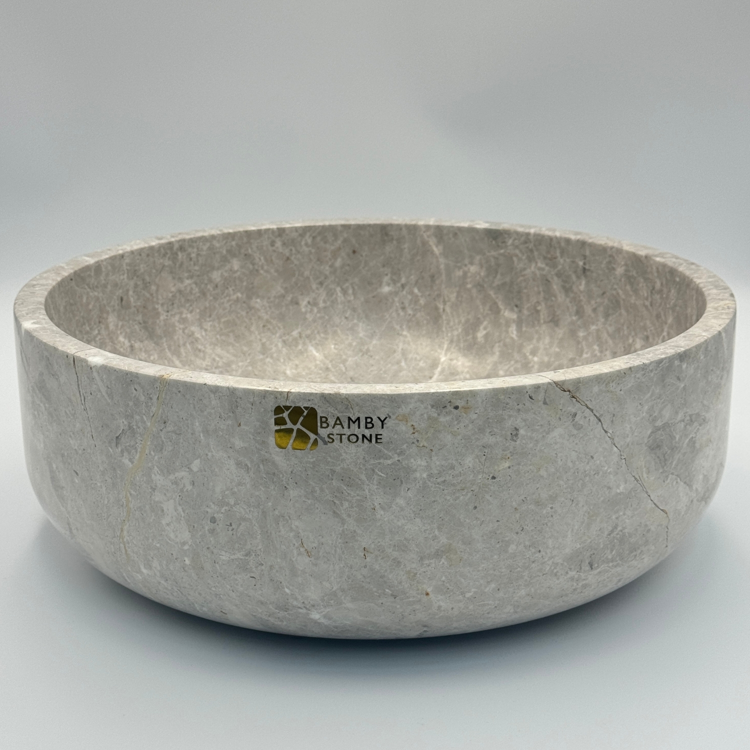 Introducing the Cloudy Bamby Marble Basin, a stunning and exclusive piece from Bamby Stone. This beautiful basin features our signature marble, only available through Bamby Stone, in a harmonious blend of white, cream, and cloudy grey tones.
