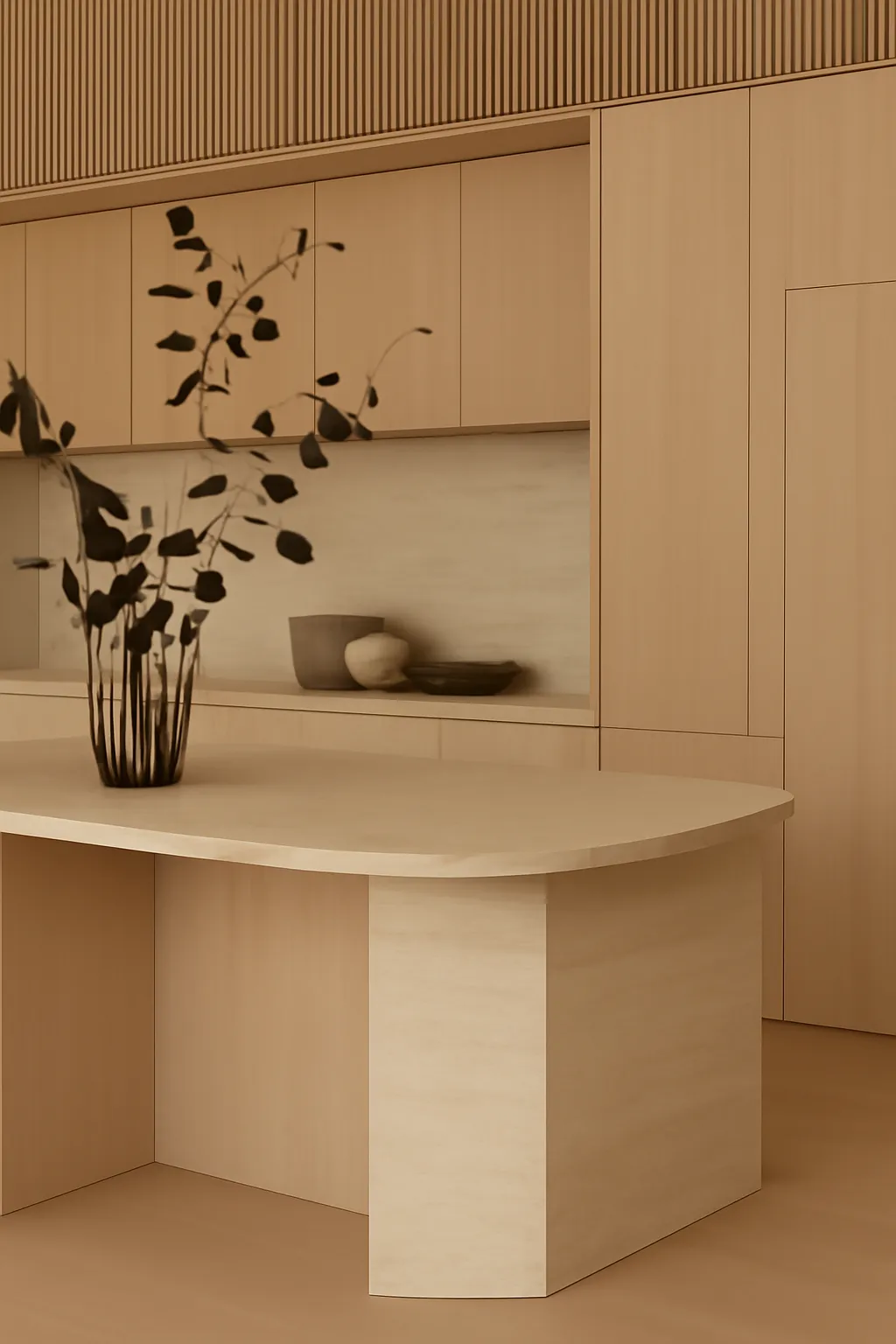 Danae Dekton is an exclusive offering at Bamby Stone, sourced from Spain. Featuring a honed finish, it presents a smooth matte surface that evokes a contemporary and organic feel. The soft warm beige base is adorned with subtle linear grain patterns, beautifully mimicking natural sandstone.