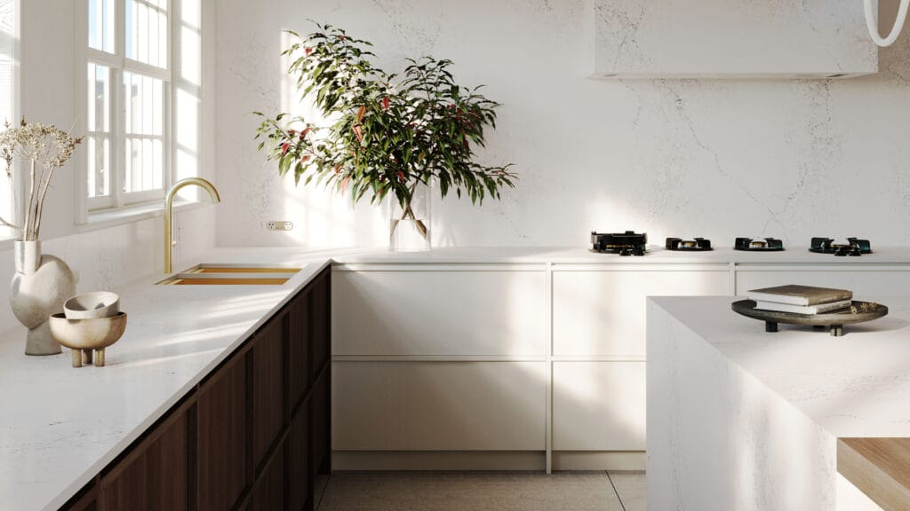 Ideal for kitchen benchtops, bathroom vanities, splashbacks, and feature walls, Empira White offers superior performance with its non-porous, stain-, scratch-, and heat-resistant properties.