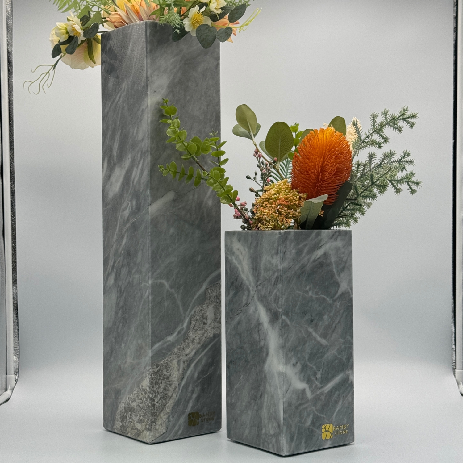 Perfect for displaying floral arrangements or as standalone decorative pieces, these vases bring a sense of sophistication and spiritual harmony to your interior décor. Enhance your home with the timeless beauty and transformative energy of the Fire Grey Marble Vase Set.