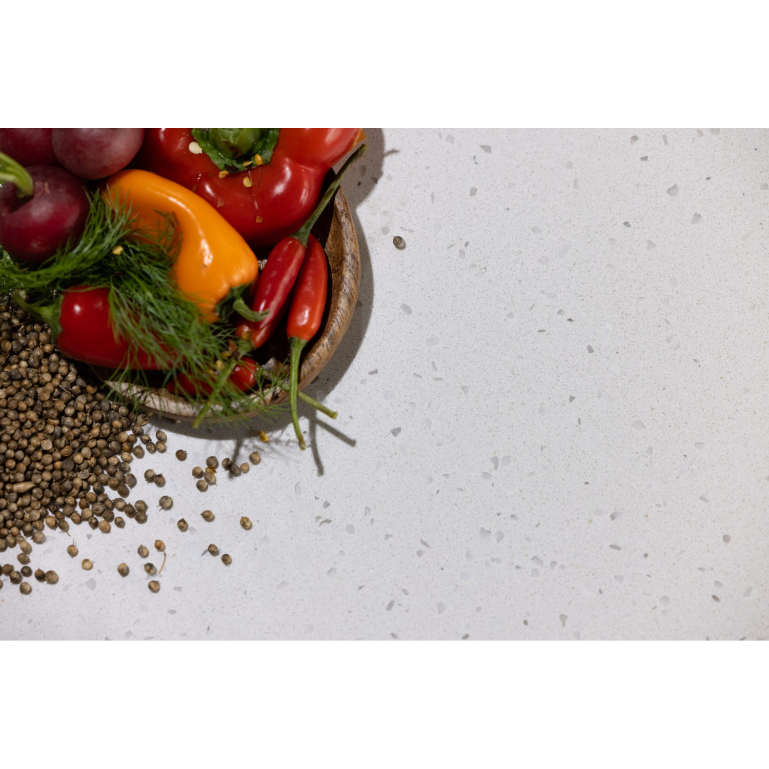 The random distribution of these inclusions ensures that each piece of Fraser is truly unique, offering a versatile and eye-catching surface suitable for a wide range of interior applications, including benchtops, bathroom vanities, splashbacks, wall cladding, and feature installations. Enhanced with Alpha Shield technology, Fraser provides invisible protection against stains, everyday wear, and household chemicals for long-lasting performance.