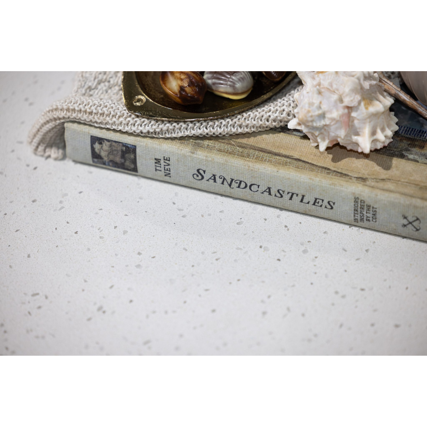Fraser is a distinctive mineral crystalline sintered stone (silica-free) with a sleek polished finish, inspired by the diverse beauty of Fraser Island’s shoreline. This unique surface features a dynamic mix of glass fragments and mineral inclusions in various shapes and sizes, scattered irregularly to create subtle visual interest and natural depth.