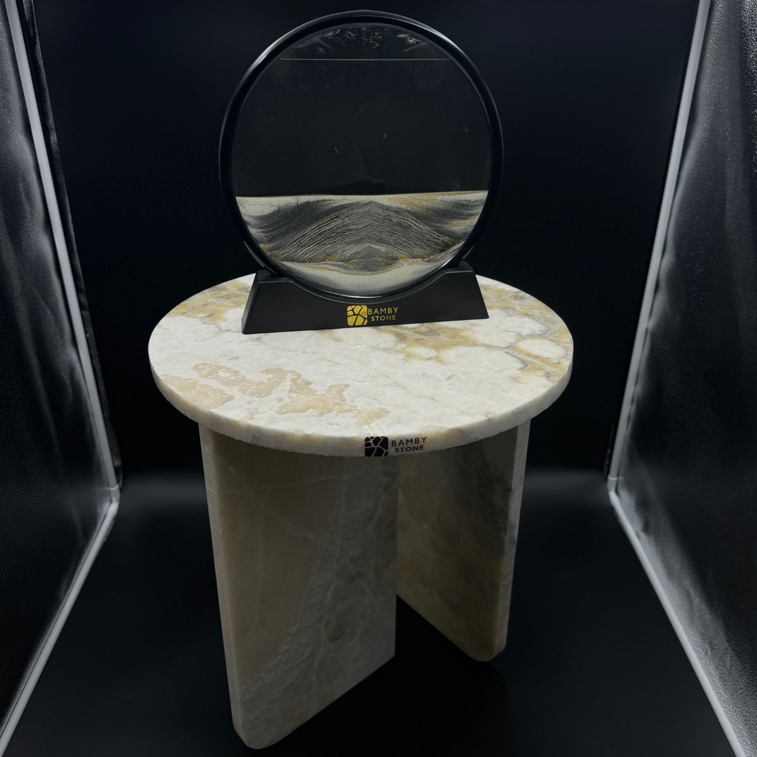 The Honey Onyx Decorative Side Table is a masterfully crafted piece that seamlessly blends function and aesthetic appeal. This side table is fashioned from Honey Onyx (Pietersite) marble, renowned for its vibrant and captivating mix of brown, gold, red, and yellow hues. Each table boasts a unique pattern, ensuring that no two pieces are identical, adding an element of exclusivity and charm to your home decor.