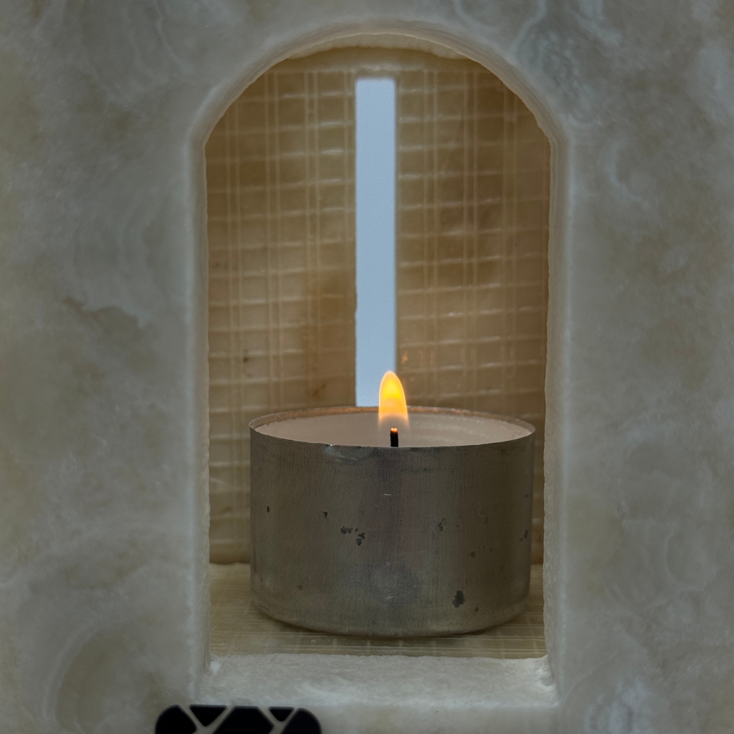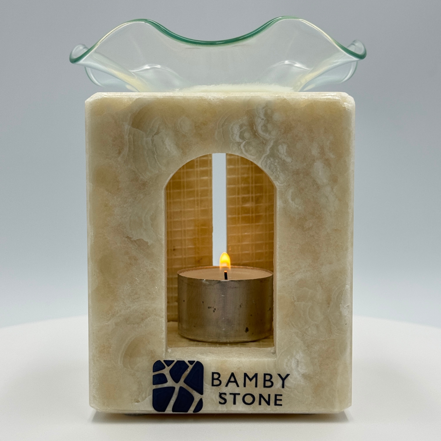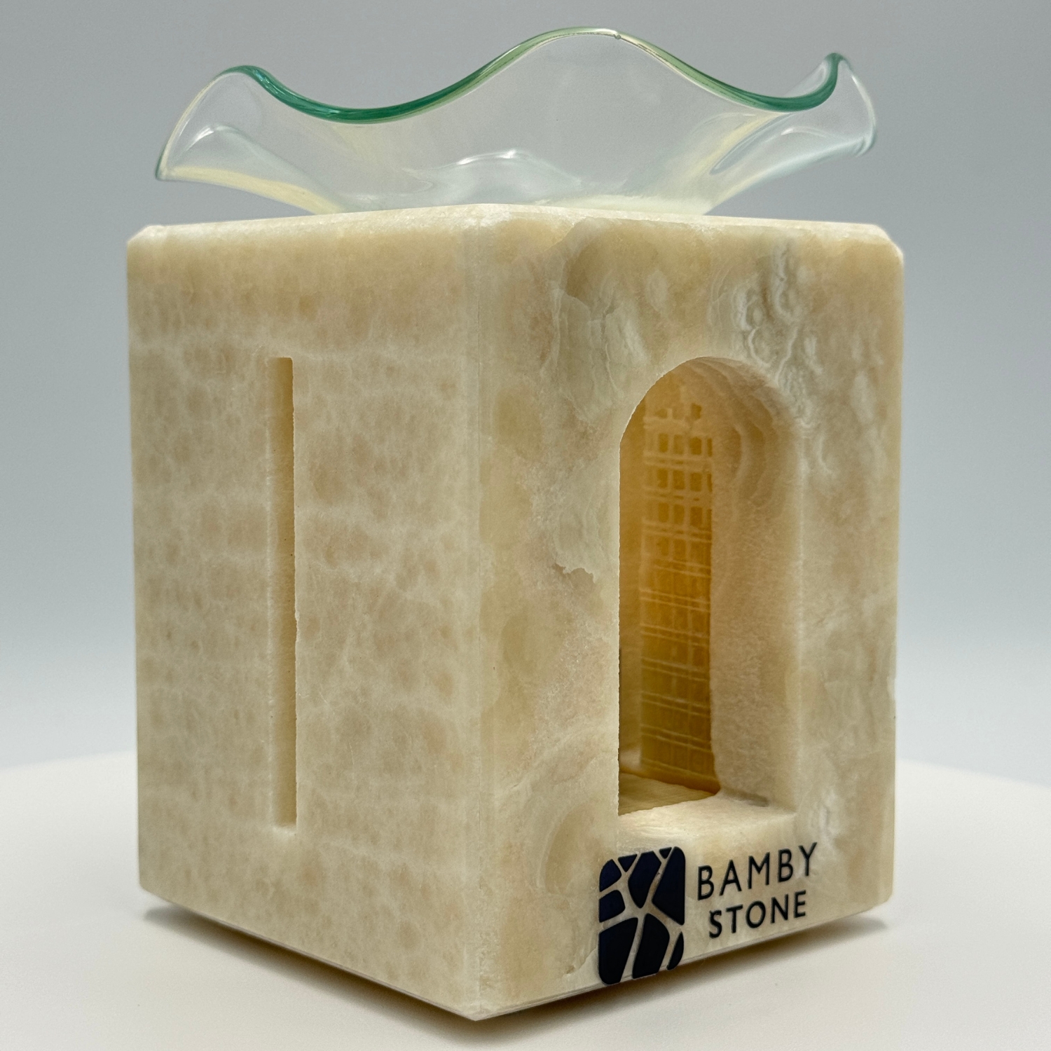 Introducing the Honey Onyx Oil Burner, an exquisite creation crafted from luxurious Honey Onyx marble. This stunning oil burner features a mesmerizing array of earthy tones, including browns, golds, reds, and yellows, making it a captivating addition to any space.
