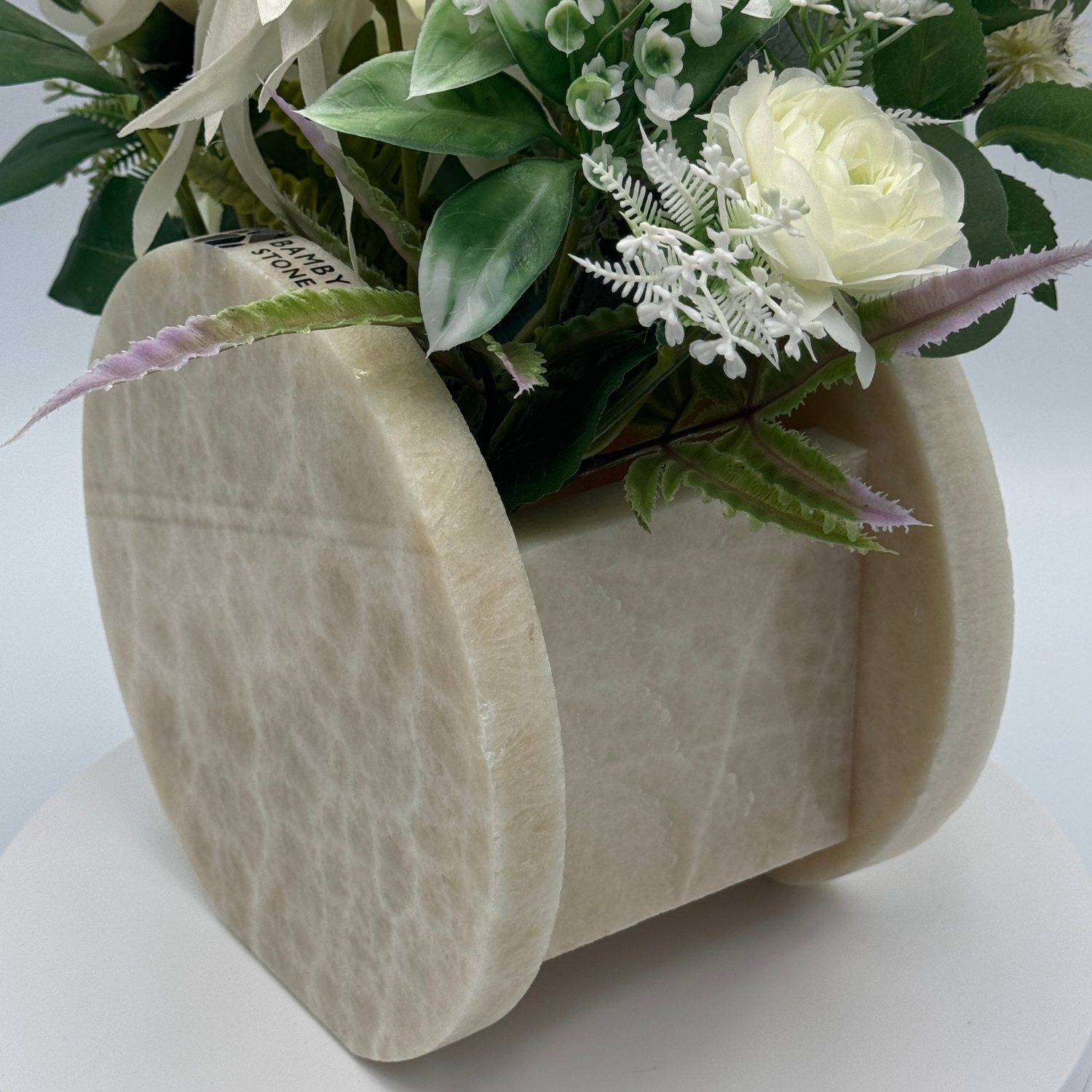 Elevate your interior décor with the Honey Onyx Round Flower Pot, and let its serene energy and timeless beauty transform your space into a sanctuary of peace and inspiration.