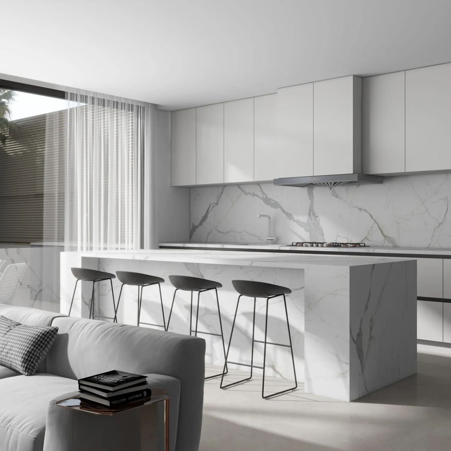 Ideal for a wide range of design outcomes, Infinity Calacatta offers durability, low maintenance, and high-end aesthetic impact—perfect for transforming spaces with confidence.