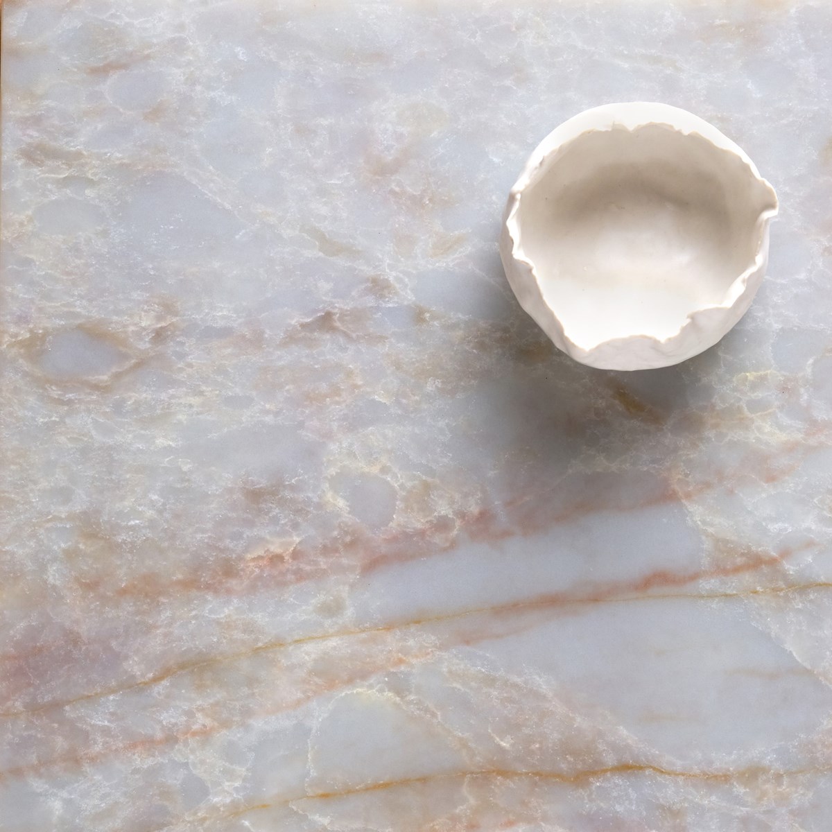 Ivory mineral surface with pearl depth and soft golden undertones, perfect for warm and elegant interiors.