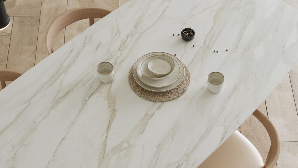 ❌ “outdoor use” — Engineered stones suit indoor use only; heat, sun, and outdoor conditions can affect colour and performance.