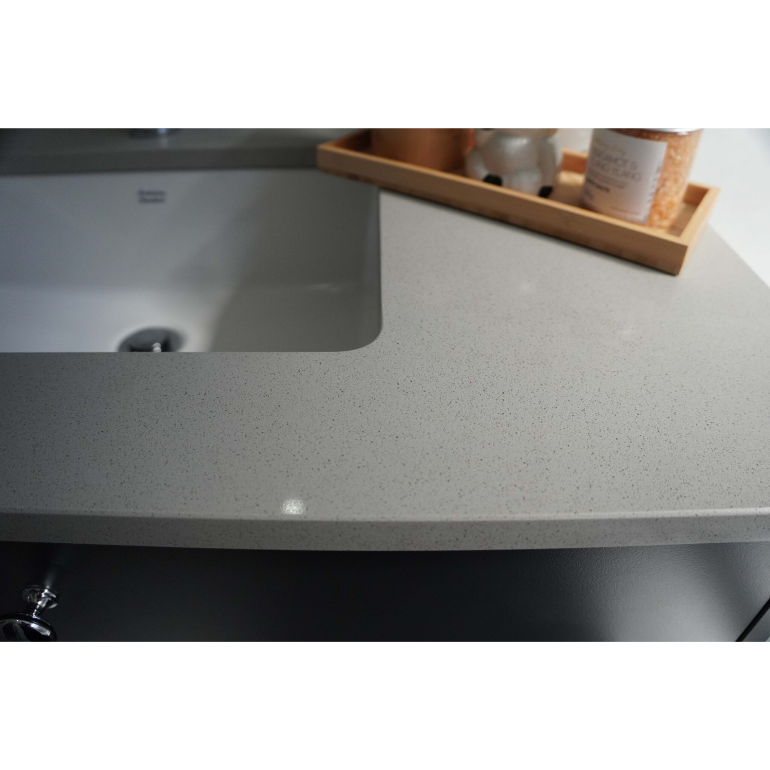 2012 Mondo Sand is a refined engineered mineral surface (silica-free) exclusively available at Bamby Stone, designed to capture timeless elegance with a modern twist. Its mid-grey base is delicately interspersed with subtle speckles, offering a contemporary interpretation of classic terrazzo aesthetics. The polished finish elevates its luminous quality, reflecting light to brighten interiors and showcase its detailed patterning.