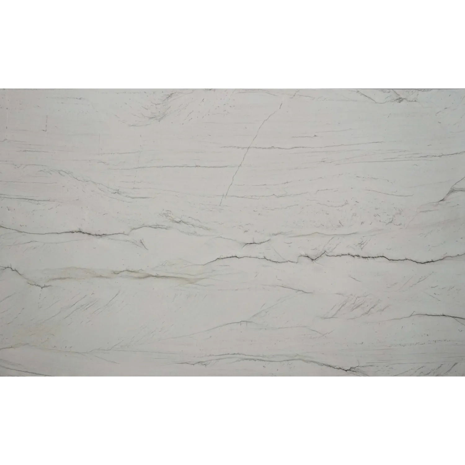 Honed Quartzite in a creamy white tone with soft grey linear veining, ideal for kitchen benchtops and timeless interior designs.