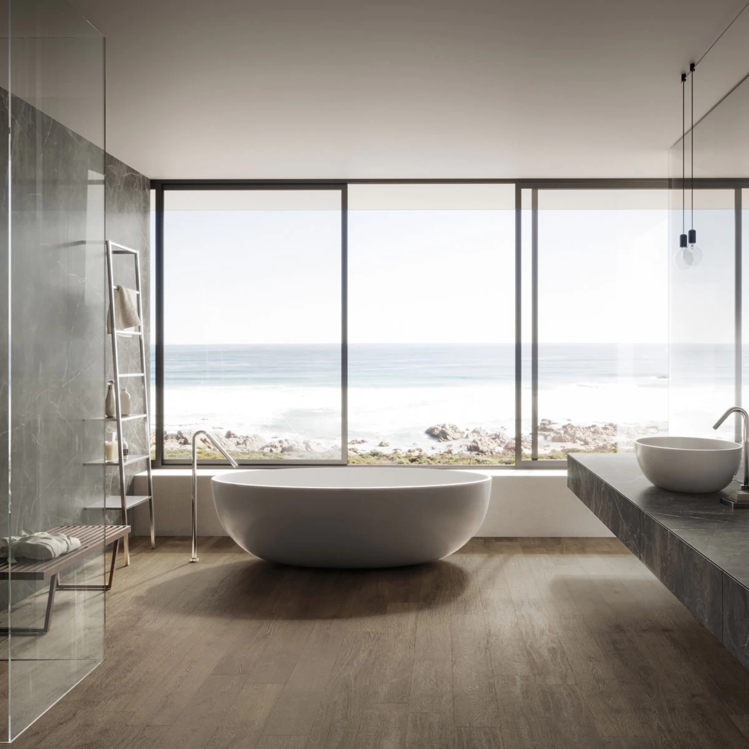 Ocean Grey (Pinolite) carries a serene, cooling energy that helps you reconnect with your inner self and express your deepest thoughts and emotions with clarity. Its cloudy grey tone, blended with white, cream, and beige hues, evokes the tranquillity of mist-covered seas, making it a perfect companion for spaces of reflection and renewal. This honed, bookmatched stone enhances both modern and classic interiors with refined elegance. Suitable for a wide range of applications, Ocean Grey (Pinolite) is ideal for bathroom walls and floors, benchtops, splashbacks, and outdoor features like fountains, stairs, and pool surrounds. Let it ground your environment with peace and subtle strength.