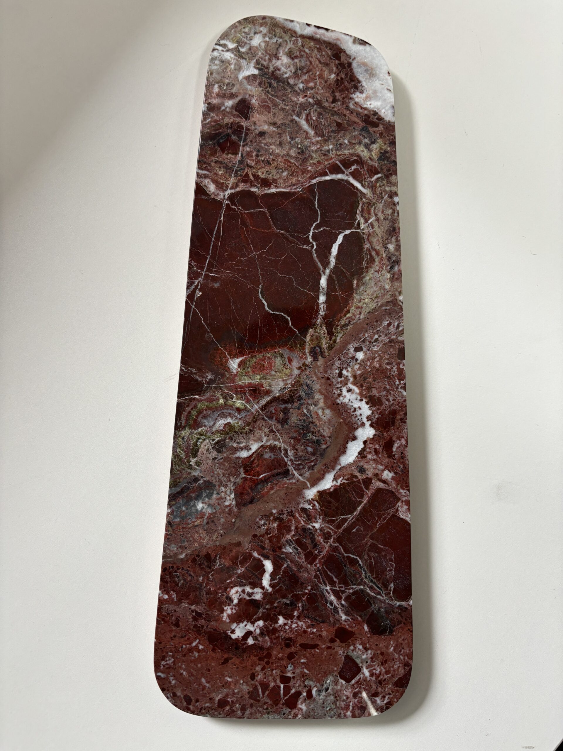 The Rosso Levanto Marble Tray is a masterpiece of natural stone, exuding sophistication and vitality. Sourced from the picturesque Italian coastal town of Levanto, this marble is renowned for its deep red-burgundy tones and intricate white veining. The stone's captivating aesthetic evokes the essence of passion and creativity, symbolizing the heart and its boundless energy.