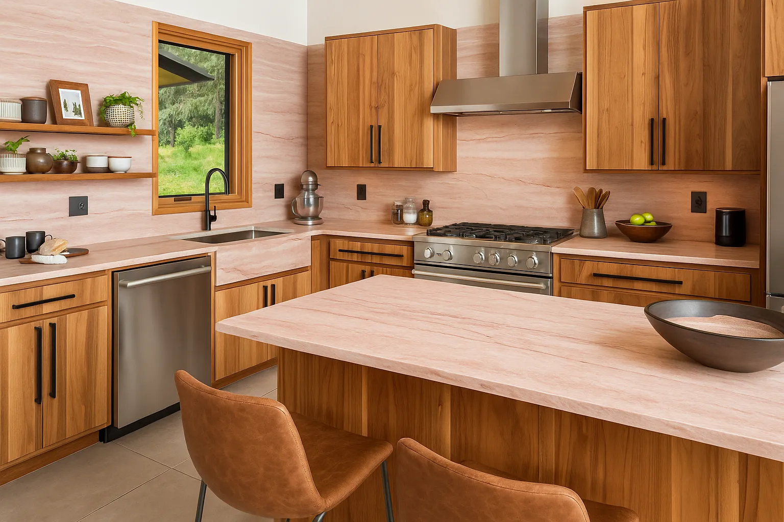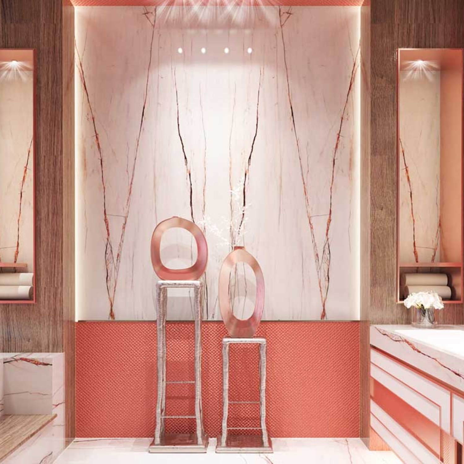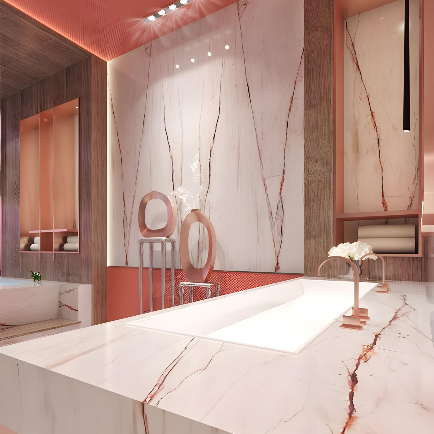 Rosso Venato is a bookmatched polished marble from Italy, known for its unique blend of white, pink, red, and maroon streaks that create a captivating natural canvas. Inspired by the metaphysical qualities of Cinnabar, this striking stone is believed to support personal transformation, emotional strength, and prosperity. Rosso Venato’s vivid movement and elegant colour palette make it an ideal choice for kitchen benchtops, bathroom walls, feature flooring, and custom decorative installations. Whether you’re crafting a luxurious residential space or a bold commercial setting, this stone will infuse your design with refined energy and depth.