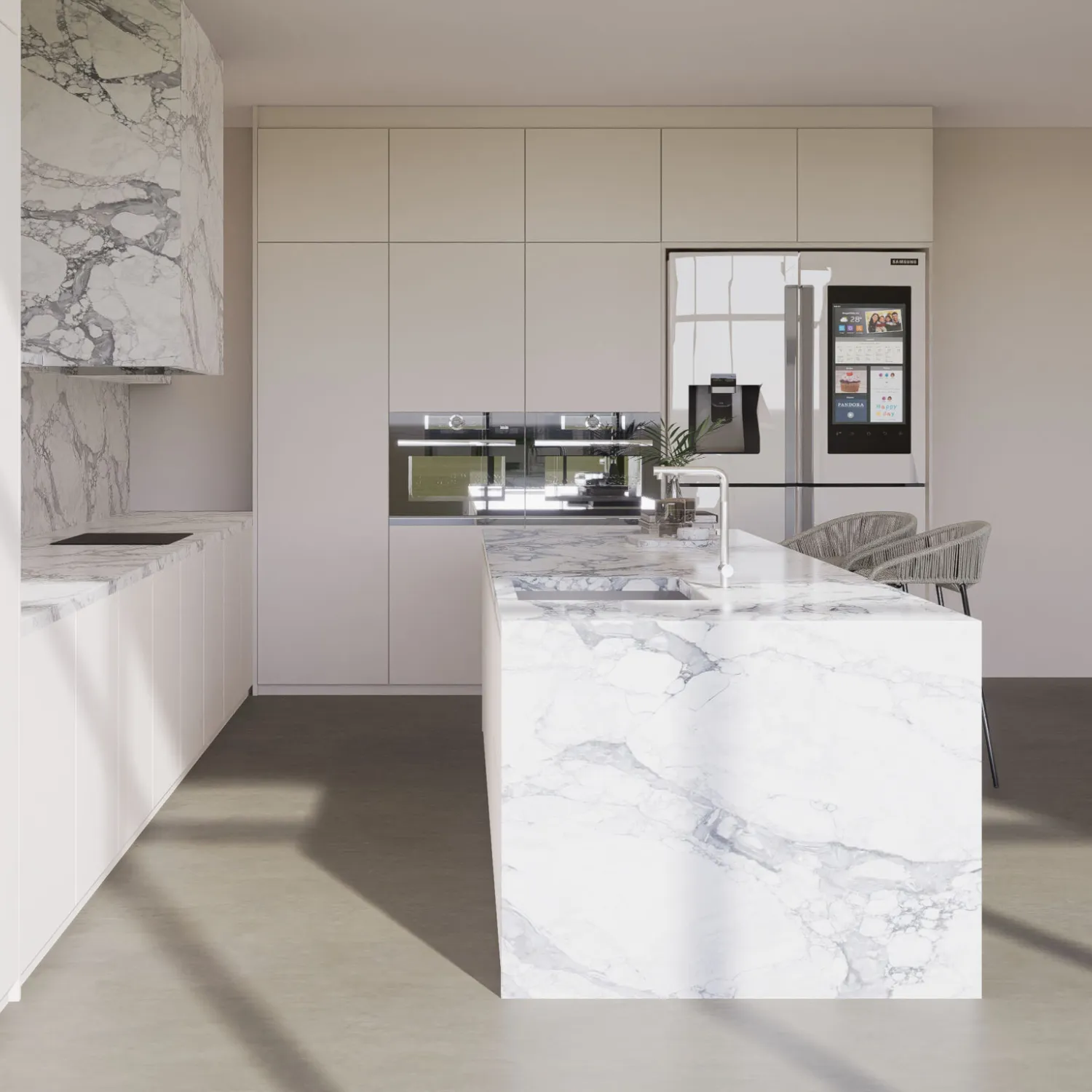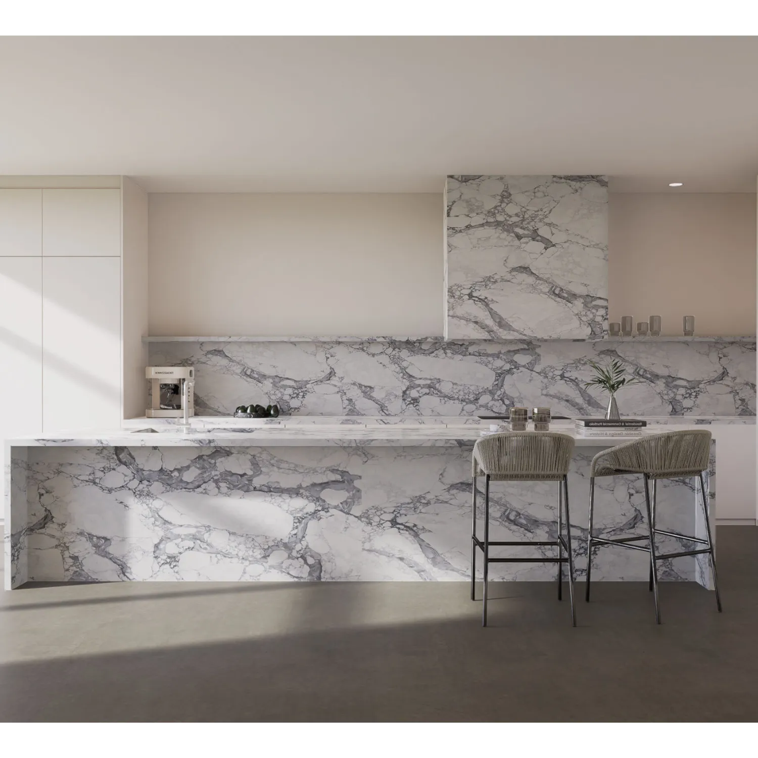SE09 Super Arabescato is a premium crystalline silica-free mineral surface, exclusively available at Bamby Stone. Drawing inspiration from the timeless elegance of Calacatta marble, this surface showcases a refined white base gently layered with soft grey veining that flows consistently across the slab. Its harmonious aesthetic brings a sense of calm, balance, and sophistication to any interior environment.