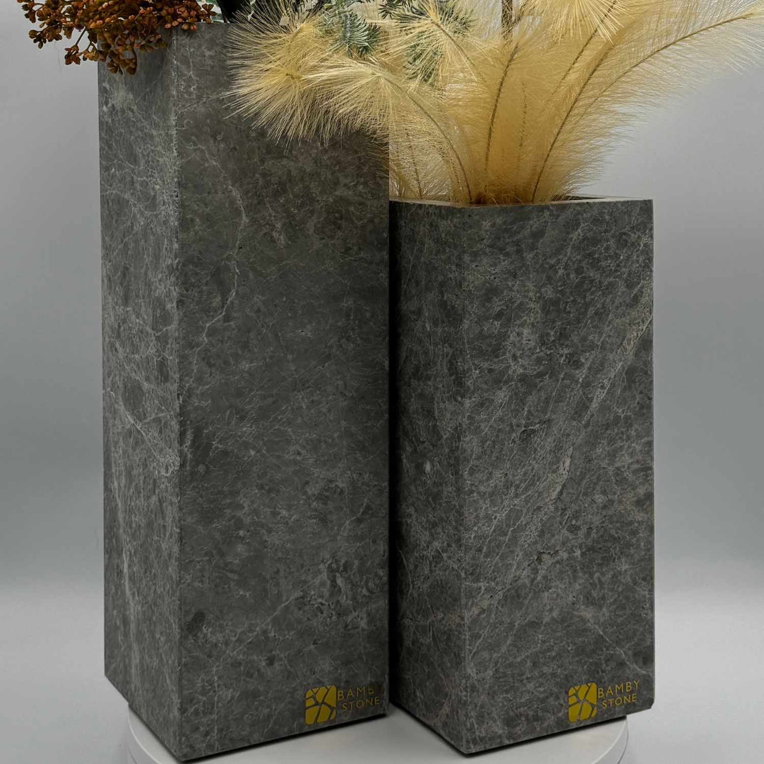 Elevate your home or office with the Tundra Limestone Vase Set, where luxury meets wellness. These vases are more than just decorative pieces; they are symbols of holistic harmony and elegance. Whether placed on a dining table or used as striking floor accents, this vase set will enhance your space with its refined beauty and positive energy. Embrace the luxury and well-being that Tundra limestone and Noble Shungite bring to your environment.