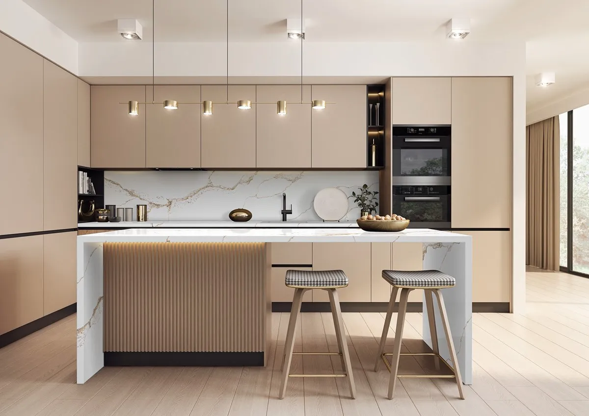 Verona Gold from the Quantum Zero Ultra Natural Range is a radiant, silica-free engineered surface that brings warmth and elegance into any setting. Characterised by a creamy neutral base highlighted with soft golden veining and subtle mineral movement, this surface mimics the natural glow of Italian limestone while delivering advanced durability and low maintenance. Perfect for kitchen benchtops, bathroom vanities, and custom furniture pieces, Verona Gold blends timeless beauty with contemporary functionality, making it an ideal choice for refined interior spaces.
