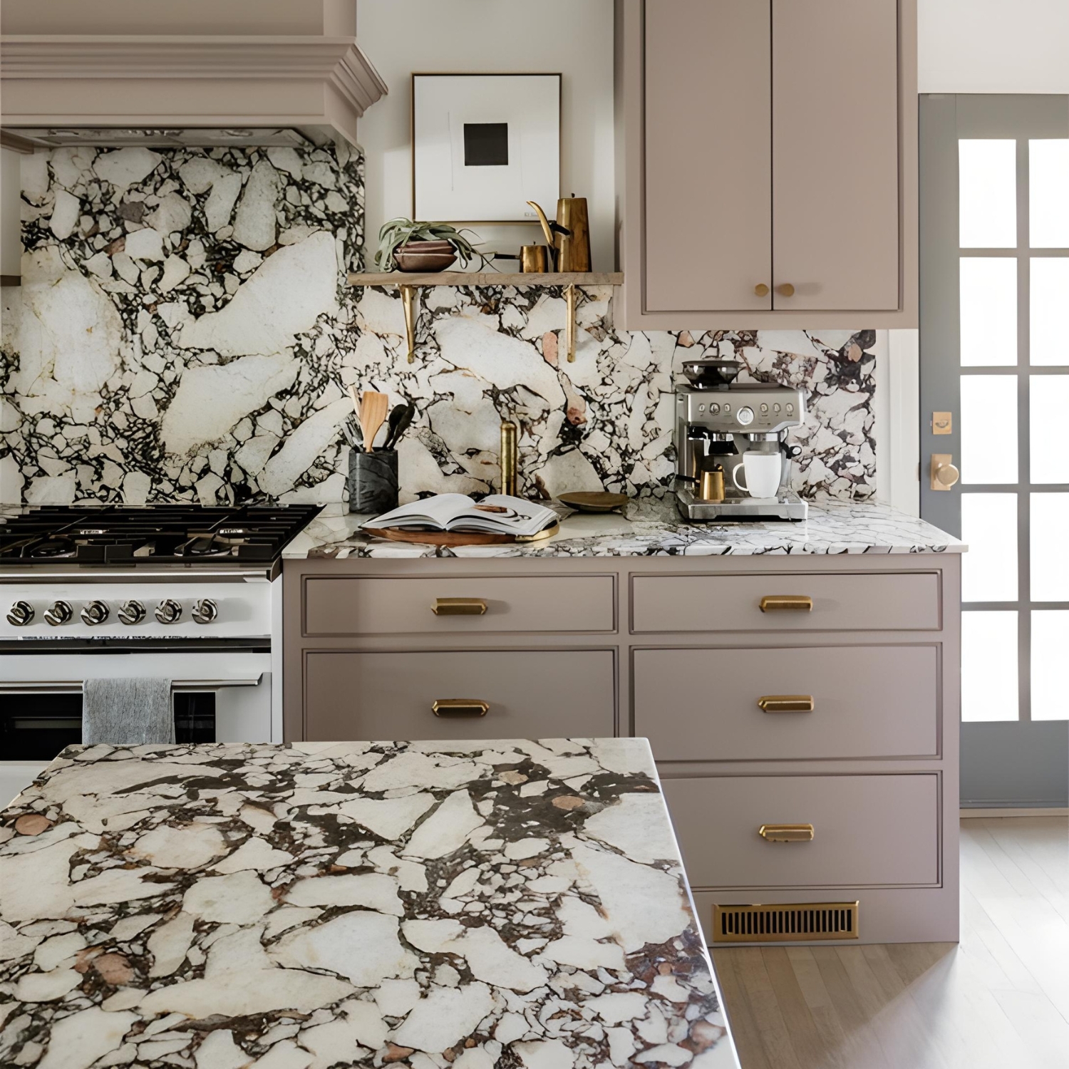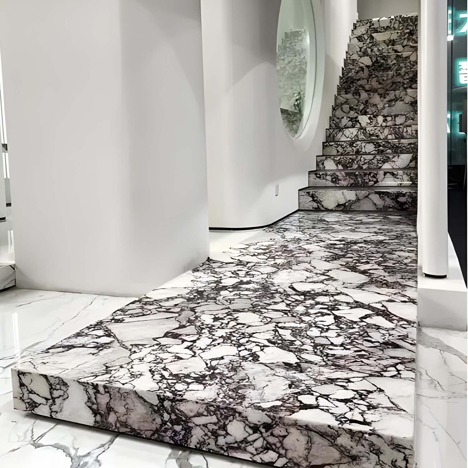 Viola Verde, also known as Wavellite, is a honed, bookmatched marble quarried in Italy, featuring an exceptional spectrum of white, cream, blue, green, orange, and burgundy tones. This vibrant blend offers an expressive and harmonious aesthetic that feels both bold and nurturing. Symbolising compassion, peace, and emotional rejuvenation, Viola Verde enhances any space with a sense of soulful creativity. Perfect for making an unforgettable statement, this stone elevates kitchen benchtops, splashbacks, bathroom sinks, floors, and feature walls—infusing each application with warmth, richness, and visual impact.