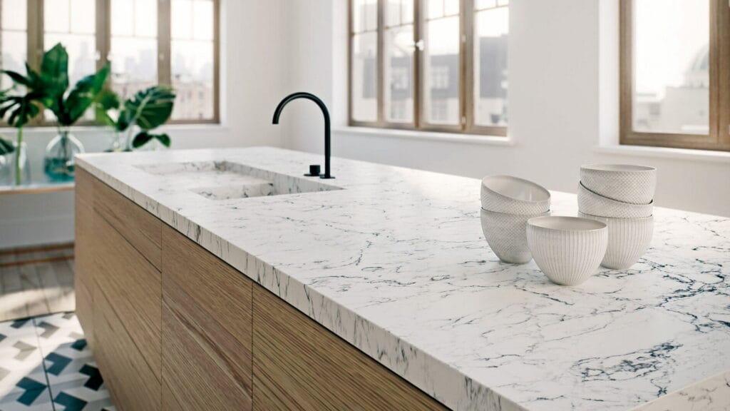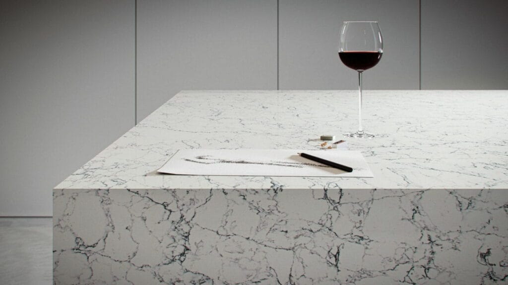 Crafted from a sustainable blend of natural minerals and recycled materials, White Attica meets modern health and safety standards while delivering lasting elegance. The polished finish amplifies its luminous quality, reflecting light to brighten interiors and accentuate the intricate veining.