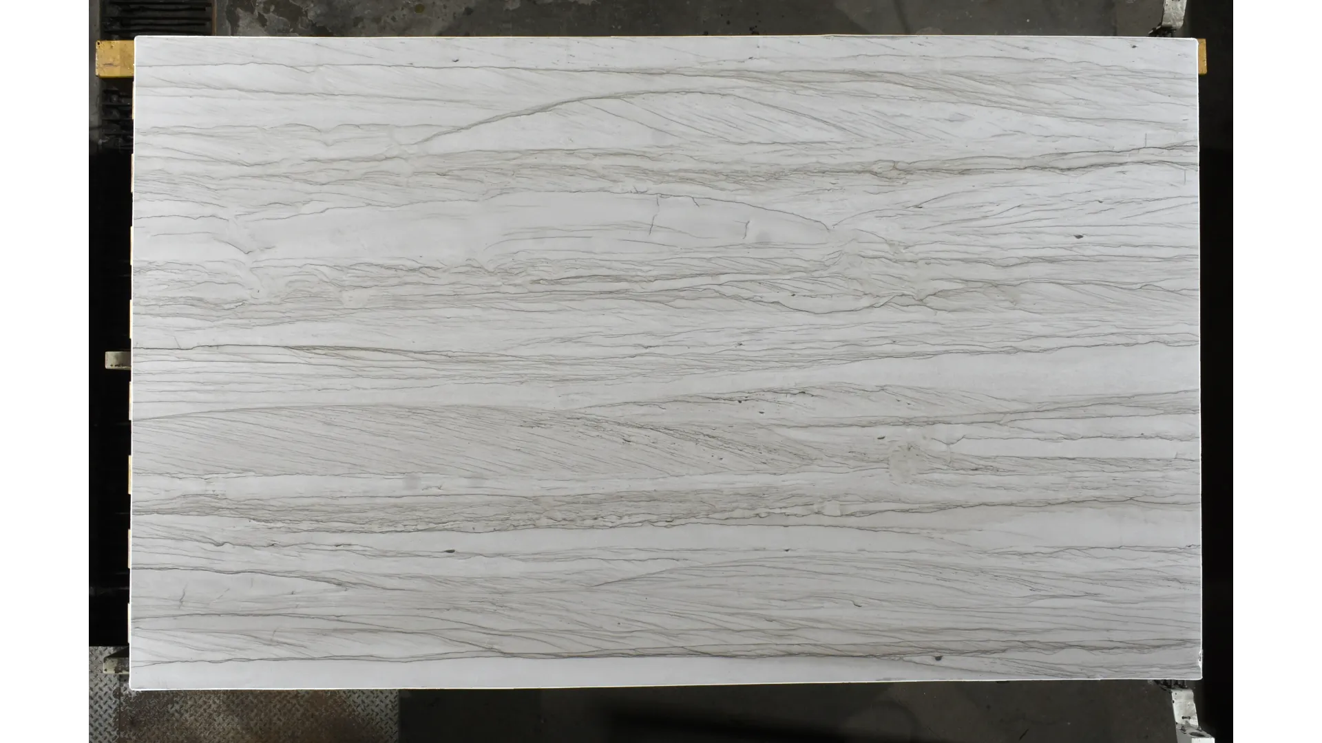 Polished Quartzite with white base and soft grey veining—ideal for benchtops, vanities, and walls.